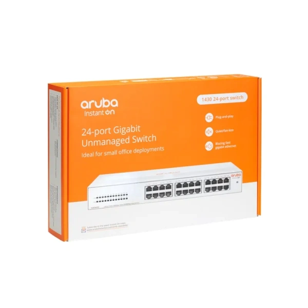 The Aruba Instant On 1430 Switch Series is a plug-and-play unmanaged switch series for small businesses looking for simple, reliable, and low-cost network connectivity. These easy-to-use switches deliver Layer 2 Gigabit Ethernet switching capabilities at an affordable price point to help connect and share common resources like printers and access points, without any complicated network configuration. With plug-and-play operation, fully automated functions, zero ongoing maintenance, and Power over Ethernet (PoE) models, these switches deliver simple, reliable connectivity for the smallest SMBs and home offices.