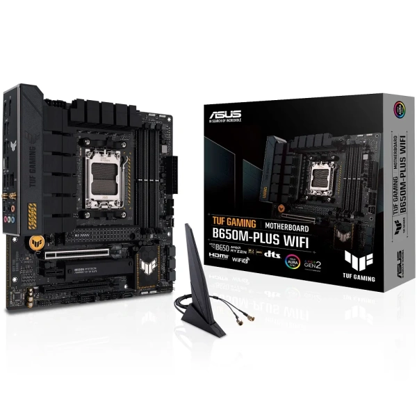 ASUS TUF GAMING B650-PLUS takes all the essential elements of the latest AMD Ryzen 7000-series processors and combines them with game-ready features and proven durability. Engineered with military-grade components, an upgraded power solution and a comprehensive cooling system, this motherboard goes beyond expectations with rock-solid and stable performance for marathon gaming. TUF GAMING motherboards also undergo rigorous endurance testing to ensure that they can handle conditions where others may fail. Aesthetically, this model incorporates rugged off-black and geometric design elements to reflect the dependability and stability that defines the TUF GAMING series.