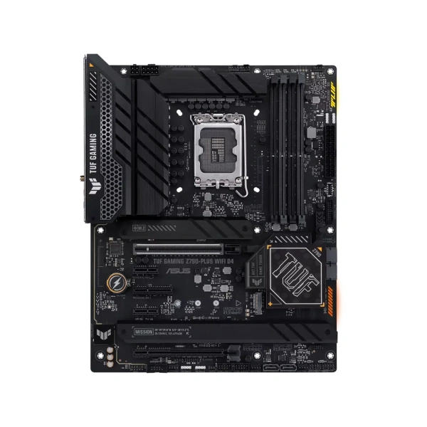 TUF GAMING Z790-PLUS WIFI takes all the essential elements of the latest Intel® processors and combines them with game-ready features and proven durability. Engineered with military-grade components, an upgraded power solution and a comprehensive cooling system, this motherboard goes beyond expectations with rock-solid performance for marathon gaming. TUF GAMING motherboards also undergo rigorous endurance testing to ensure that they can handle conditions where others may fail. Aesthetically, this model incorporates an embossed nameplate and geometric design elements to reflect the dependability and stability that defines the TUF GAMING series.