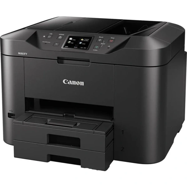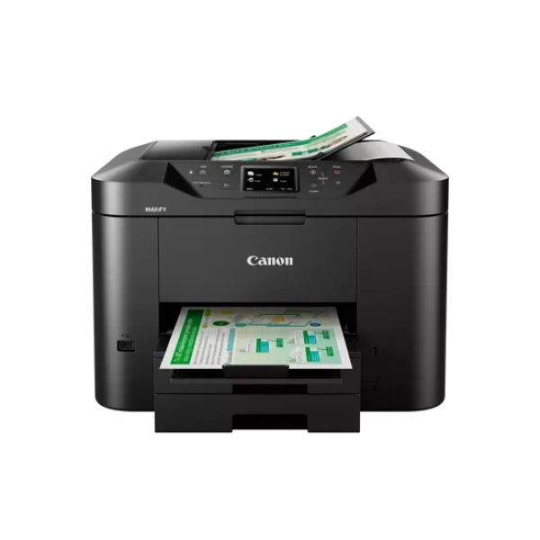 Canon MB2740 Inkjet maxify business range A4, A4 MFP, Print, Copy, Fax and Scan. 24 ipm mono, 15.5 ipm colour, 600 x 1200 print resolution, 1200 x 2400 dpi scan resolution, 500 sheet paper handling, 50 Sheet ADF, Automatic duplex, touch screen , USB, Wi-Fi, Ethernet, Smartphone and Tablet print, Scan to cloud, Scan to USB, Quick first print of 6 seconds. – 4 ink system, ,(BK, C, M, Y). Uses PGI -1400 BK, C, M and Y XL cartrdiges SNMP AND SMTP SUPPORT