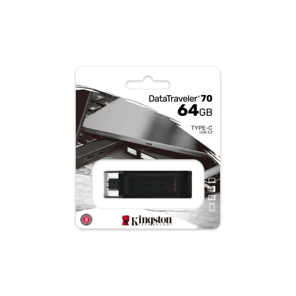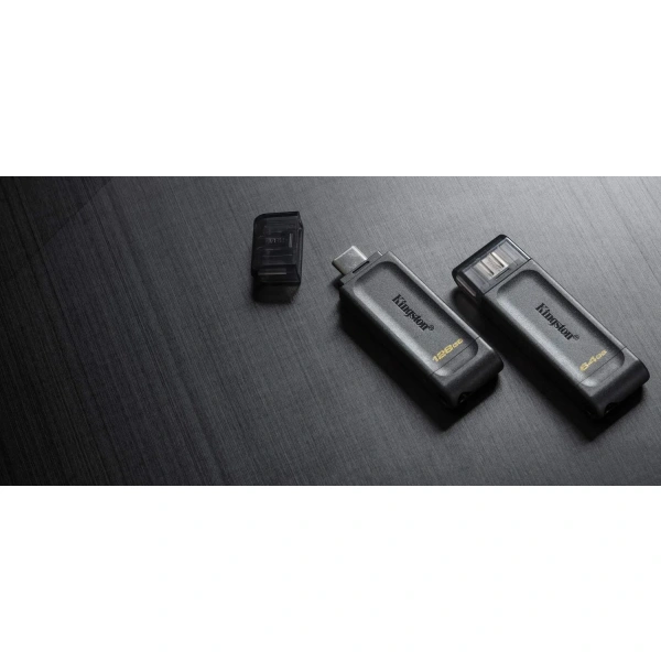 Kingston’s DataTraveler 70 is a portable and lightweight USB-C flash drive that features USB 3.2 Gen 1 speeds. It’s designed to be used with compatible USB-C devices such as notebooks, laptops, tablets and phones.