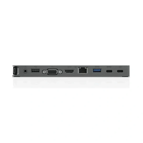 The Lenovo Mini USB-C dock lets you expand your options and add powerful capabilities with just a single USB-C connection.. Charge any legacy device with USB-A ports and effortlessly add an extra 4K or HD display, enterprise networking, and an external 3.5mm combo audio jack.