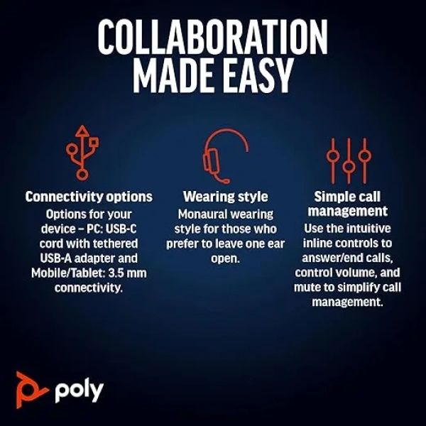 Product: Poly Blackwire 5220 Stereo USB-C Headset +3.5mm Plug +USB-C/A Adapter