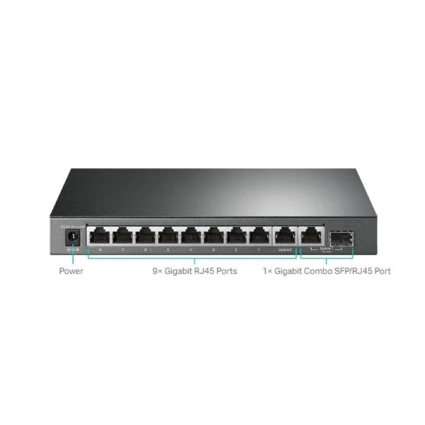 - 9x gigabit RJ45 ports and 1x combo gigabit SFP/RJ45 port