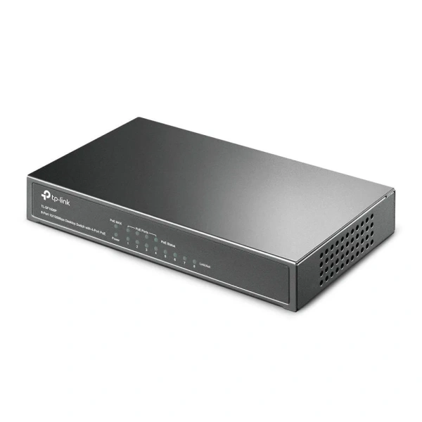 Easy To Use TL-SF1008P is easy to install and use. It requires no confi­guration and installation. With desktop design, outstanding performance and quality, the TP-LINK’s TL-SF1008P 8-Port 10/100Mbps Desktop Switch with 4-Port PoE is an ideal choice for expanding your home or office network.