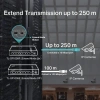 It is fully compatible with IP cameras, access points, IP phones, computers, printers, and more. Ideal for IP Surveillance —Up to 250 m Transmissions With extend mode, the PoE transmission distance reaches up to 250 m**—perfect for IP Camera deployment in large areas. **The speed of the ports in extend mode will downgrade to 10 Mbps.