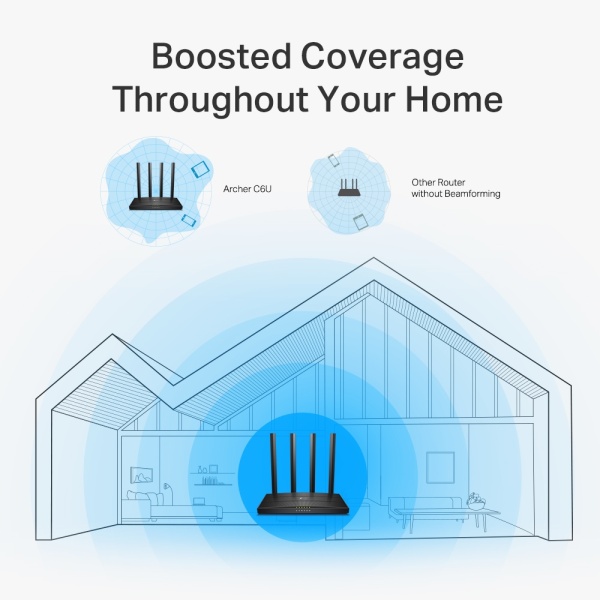 The Archer C6U creates a reliable and blazing-fast network powered by 802.11ac Wi-Fi technology. The 2.4GHz band delivers speeds up to 300Mbps, ready for everyday tasks like emailing and web browsing, while the 5GHz band delivers speeds up to 867Mbps, ideal for HD video streaming and lag-free online gaming.